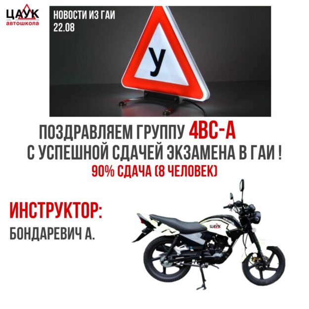 Поздравляем группу 8-ВD с успешной сдачей экзамена в ГАИ! (95% сдача — 14 человек)