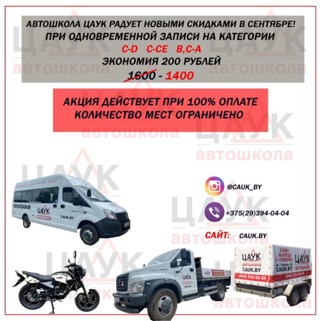 Автошкола ЦАУК радует новыми скидками в сентябре! При одновременной записи на категории