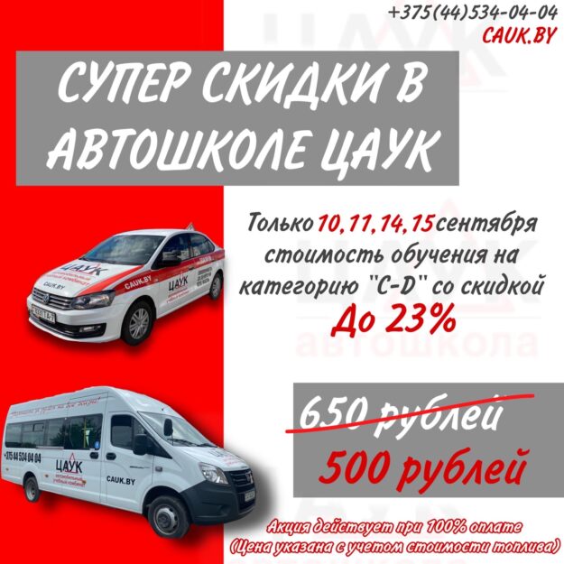Скидки в Автошколе ЦАУК !