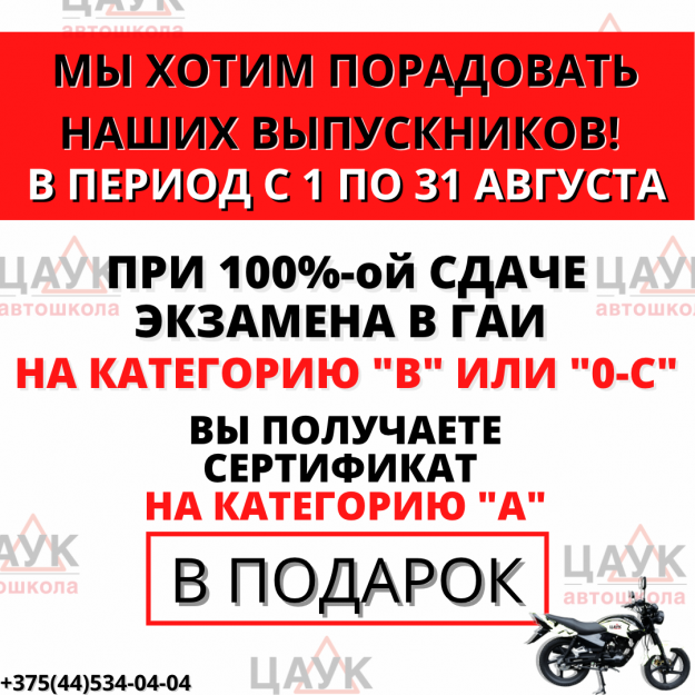 Обучайтесь на категорию «А» бесплатно! Акции, НовостиАвтор: nikvik-admin22.07.2021 Акция действует с 1 по 31 августа!
