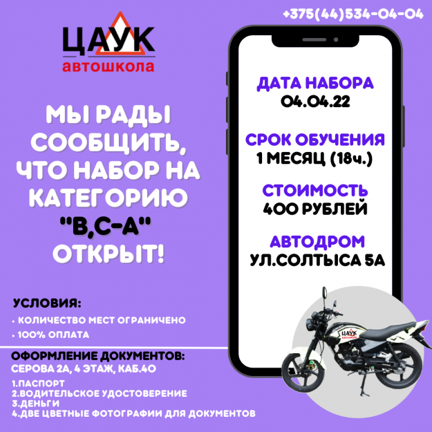 Экспресс-курс категории «СЕ»! НовостиАвтор: nikvik-admin15.03.2022 26.03 — начало занятий 05.05 — экзамен в ГАИ