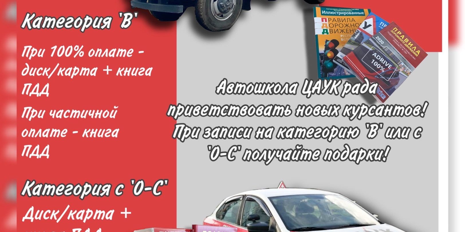 Автошкола ЦАУК рада приветствовать новых курсантов! При записи на категорию «В» или с «0-С» получайте подарки!
