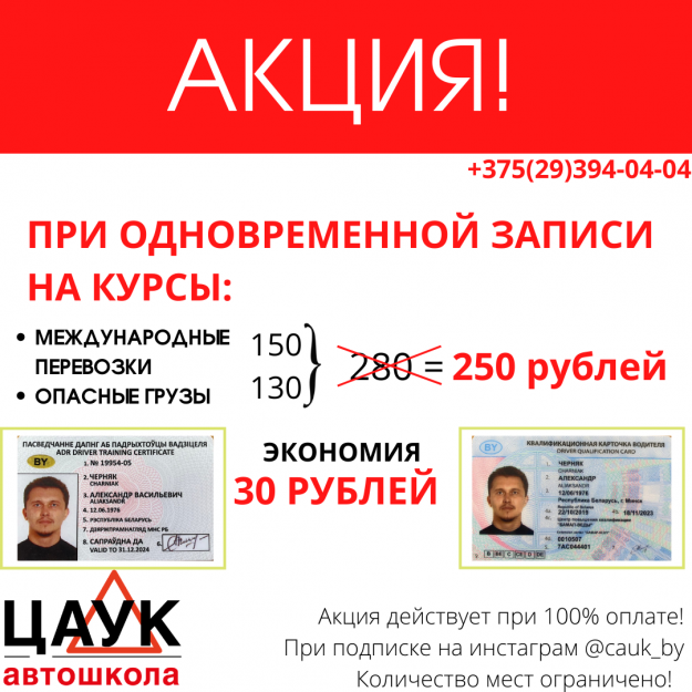 •наличие водительского удостоверения