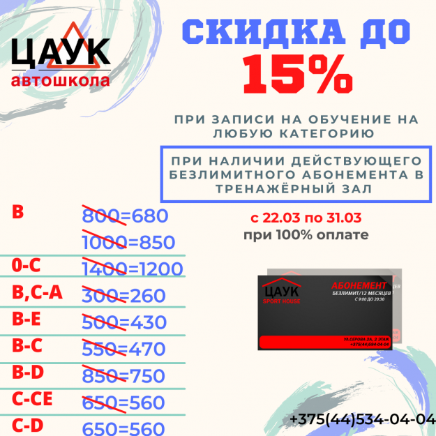 Предложение действует с 15.03 до 31.03 ! Одновременное обучение на категории !