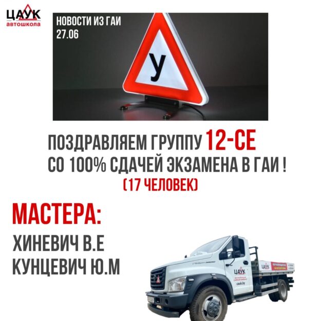 Поздравляем группу 12-СЕ со 100% сдачей экзамена в ГАИ! (17 человек)