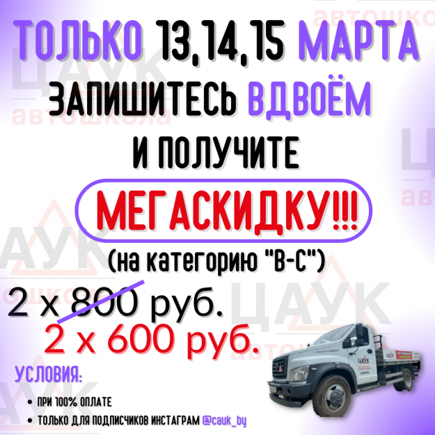 Записывайтесь на категорию «В-С» вдвоём и получайте МЕГАСКИДКУ!