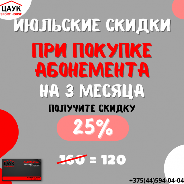 При покупке абонемента на 3 месяца, получите скидку 25%!